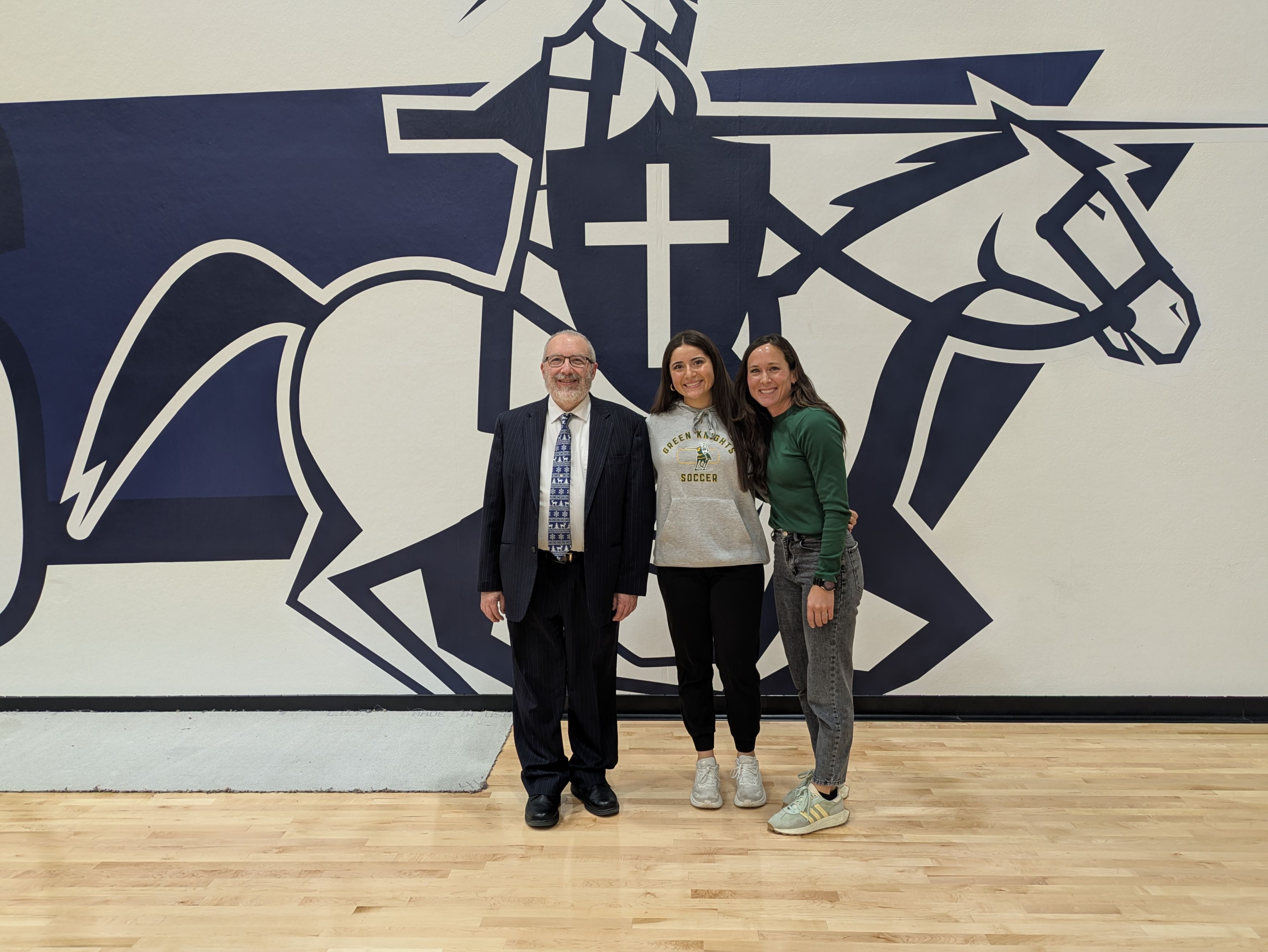 Caption: Columbus Catholic senior Jaylee Garneau is joined by athletic director Lori Wieland and Columbus Catholic Schools president David Eaton following her signing to play soccer at St. Norbert College.
